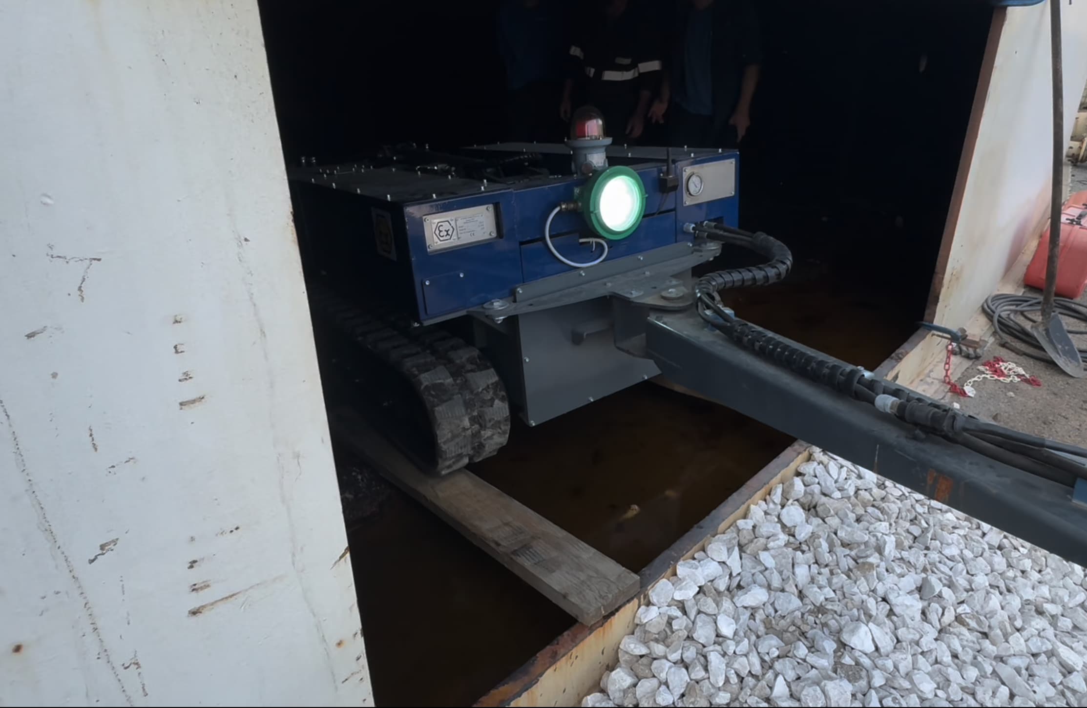 Il Robot ATEX è un sistema robotizzato all'avanguardia certificato per la pulizia e bonifica di serbatoi in atmosfere esplosive. Questo sistema innovativo combina tecnologia robotica avanzata con certificazione ATEX per operare in sicurezza in ambienti ad alto rischio.